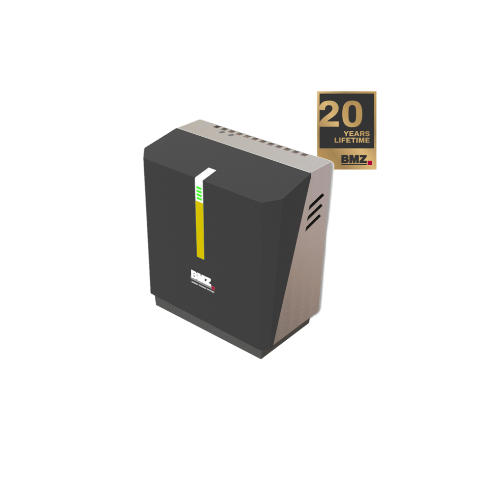 The BMZ HYPERION LONG LIFE 20 is a robust and durable high-voltage lithium-ion storage system, ideal for self-sufficient energy supply in private homes. With a 20-year lifespan and a 10-year warranty, it sets new standards in safety and efficiency.