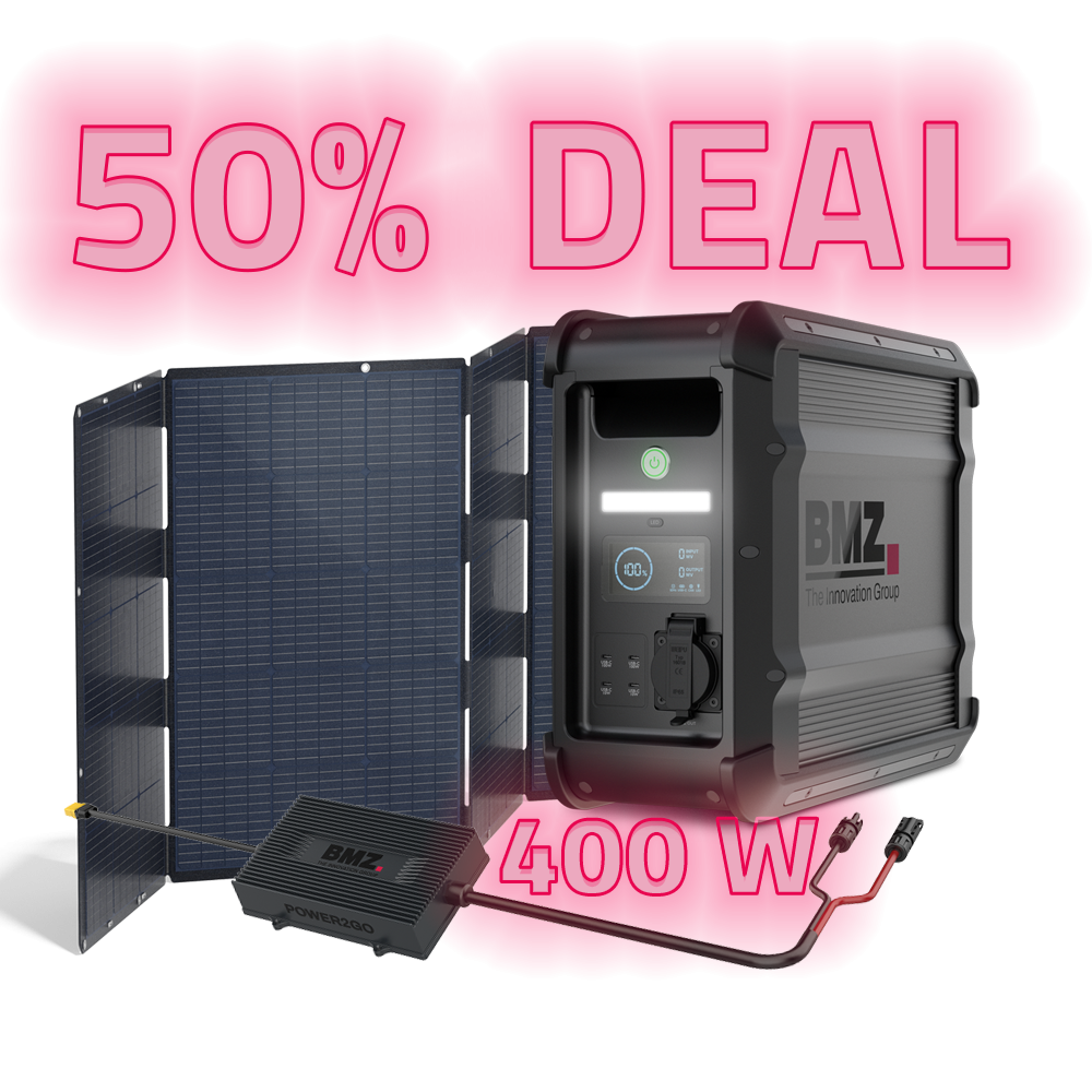 Discover our POWER2GO LIFE bundle! Combine the powerful energy storage with our foldable solar panel for ultimate mobile energy when camping and on the go.